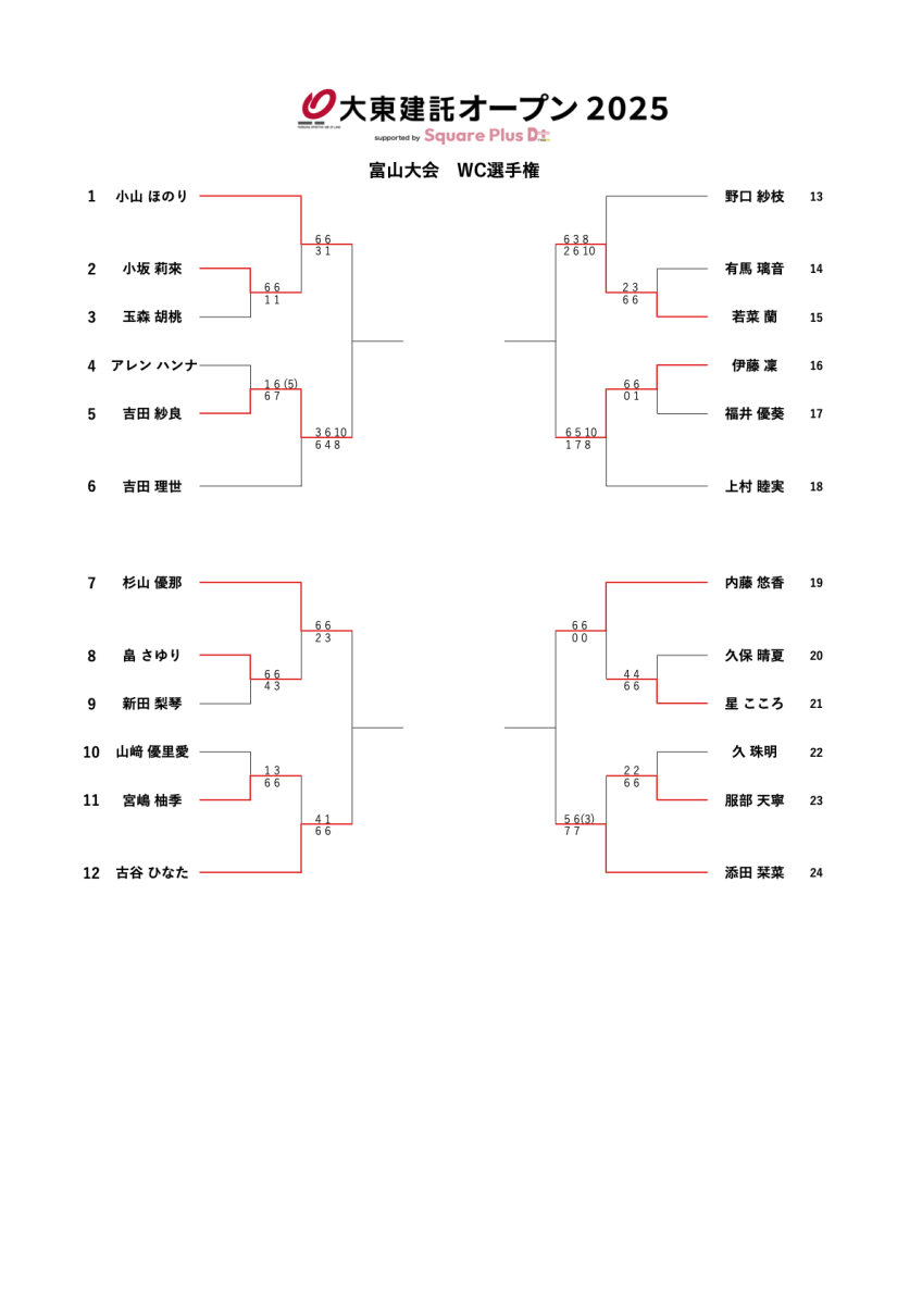 【5月10日結果】W15富山 大東建託オープン supported by Square Plus ワイルドカード選手権 Draw